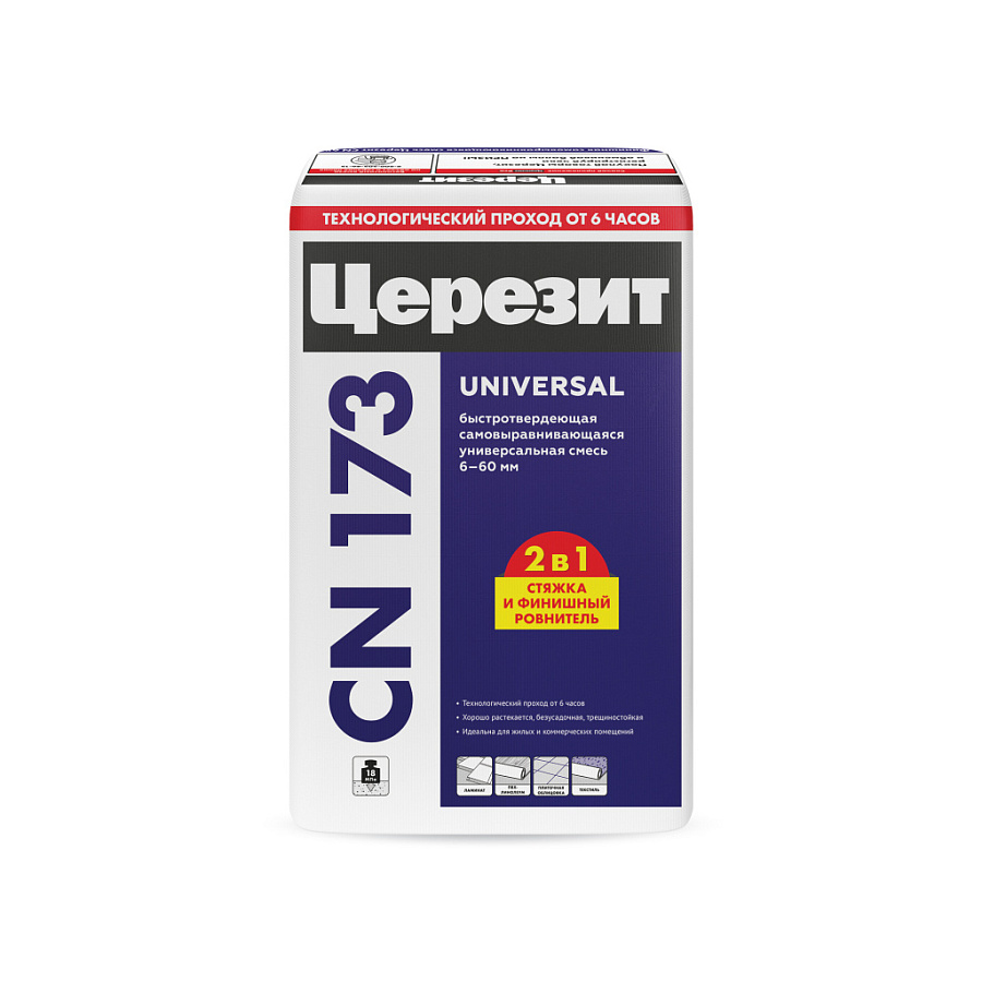 Самовыравнивающийся наливной пол Ceresit CN 173 - это инновационное решение для создания идеально ровного и прочного пола в помещении. Этот продукт изготовлен компанией Ceresit, которая известна своим высоким качеством строительных материалов.